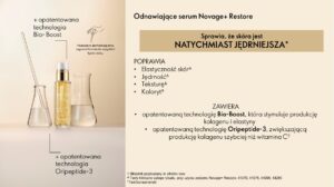 Cała seria zawiera ogólnie 8 technologii bioaktywacji, co świadczy o niesamowitym wsparciu nauki w procesie przeciwdziałaniu starzenia się skóry. NovAge+ Restore odżywia i nawilża skórę zapewniając jej jędrność i sprężystość, udoskonala owal twarzy oraz zmniejsza widoczności głębokich zmarszczek i związanych z wiekiem przebarwień. Fitoesrtogeny to niewątpliwie SEKRET tej serii.