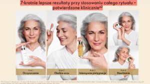 Udowadniają to testy kliniczne potwierdzające przywrócenie jędrności skórze dojrzałej aż w 94% – tach ! Również testy konsumenckie (ponad 80% ) potwierdzają dobroczynne działanie całej serii dla kobiet w wieku „eleganckim”.