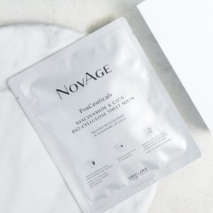 Maseczka do twarzy z niacynamidem i Cica NovAge Proceuticals ma na celu natychmiastowe i długotrwałe ukojenie skóry, oddziałując na wielu czynników, między innymi nawilżenie i jakość bariery skórnej. Zastosowanie tkaniny biocelulozowej sprawia, że maseczka jest doskonale nasączona serum oraz dokładnie przylega do skóry, zapewniając optymalną efektywność i najlepsze doznania.